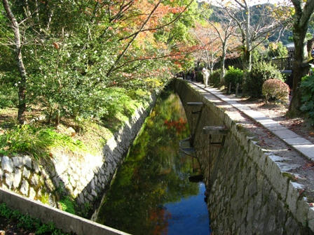 さて、いよいよ哲学の道の散策です。意外と狭くて二人並んで歩けないんですよね。縦一列に並んで、アホな事を喋りながら、全くムードもなく歩きました。水がものすごく綺麗なのに驚きました。大きな鯉も泳いでいました。以前、主人が来た時は鴨もいたそうです。やはり若いカップルが圧倒的に多かったです。私も若い時に歩きたかったですね。