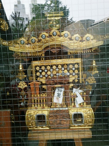おみこしがたくさん置いてありました。