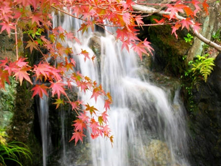 もみじ谷の滝とモミジです。