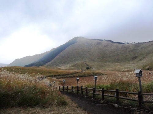 こんな状態でもバスツアーの団体さんは山を昇っていました。