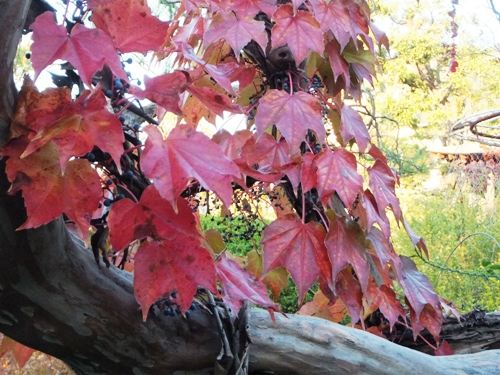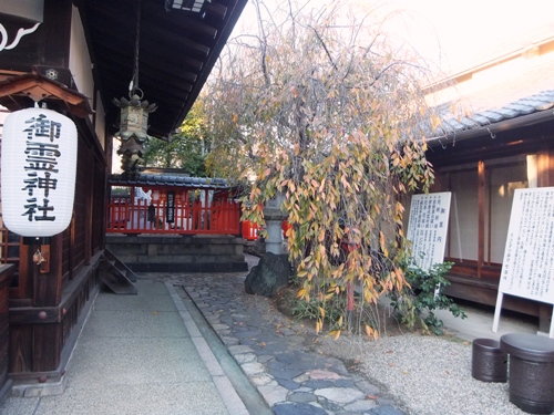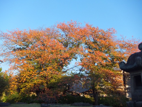 御霊神社のしだれ桜の紅葉 淡いオレンジ色ですね。