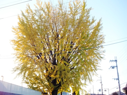 真ん丸イチョウです。これは、東側から見た所です。逆光です。