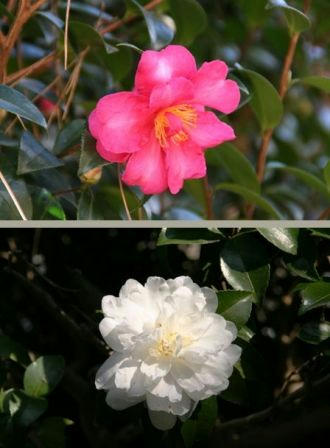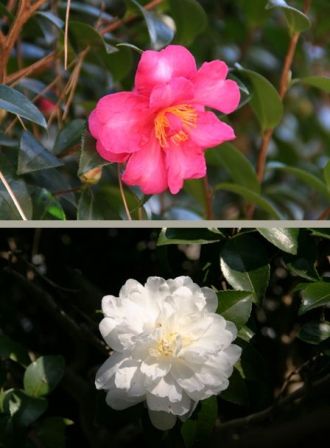 哲学の道付近のピンクと白の山茶花です。11/15