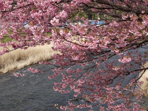 今日は、本家本元の河津桜のご紹介です。黒船電車を河津駅で下車します。静岡県河津町には、7000本の河津桜があります。 ちょうど3/3のこの日は、満開でした! 河津桜は、カンヒザクラとオオシマザクラの自然交配したものです。大きくて、濃いピンク色をしています。 河津川沿いに河津桜が700本植わっています。 雨が上がって、本当に良いお天気になりました。 土手は、桜のトンネルで、人が一杯です。 橋の上からも絶景です。 これが、河津桜の原木です。天然記念物になってます。 河津桜の一本木 見事です。 スイセンも咲いていました。 ツクシがすごい密集して生えていました。河津桜は前から、見に来たいと思っていたので、ちょうど満開で、お天気が良い時に見れて良かったです。