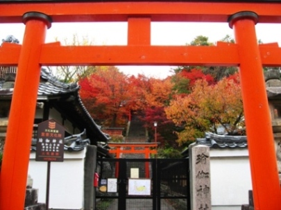 場所は奈良ホテルの真ん前です。ところが、門が閉まっているのです。看板があって、「都合により当分は閉門します。」と書かれています。もうせっかく来たのに残念です。門から境内を覗くとかなり紅葉しているようです。とりあえず、門からの写真だけ撮影しました。瑜伽神社の詳しいサイトを見つけましたので、