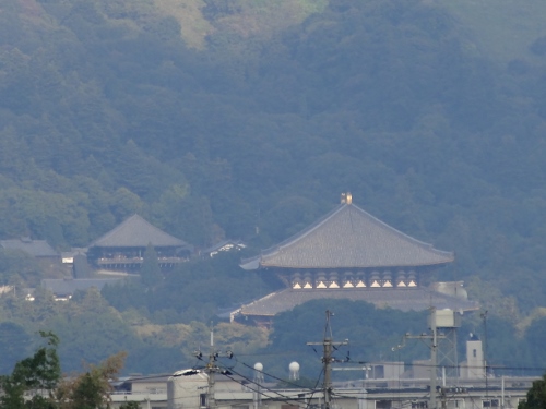 向かって右側が東方向で、東大寺や二月堂が見えます。デジタルズームで撮影