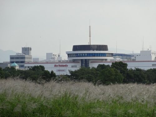 ススキの群生の向こうにイトーヨーカドーが見えます。