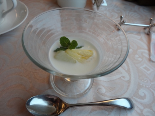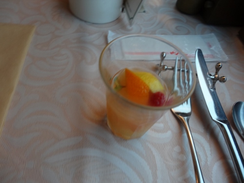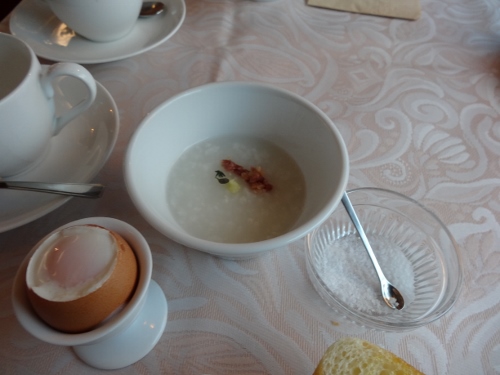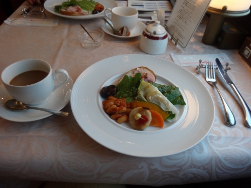 夕べのディナーは4人席の相席でしたが、朝食は窓側の2人席でした。