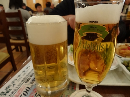 主人は生ビール 私は、サッポロ エーデルピルス(アロマホップを通常の2倍も使用した