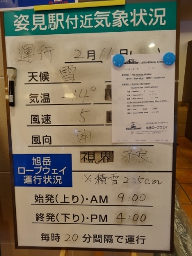 昨日は、視界良好と書いてあったのですが。しかも、-14℃です。