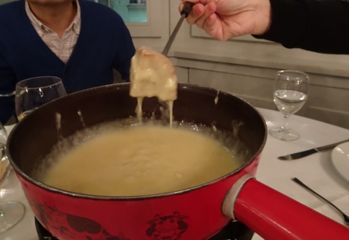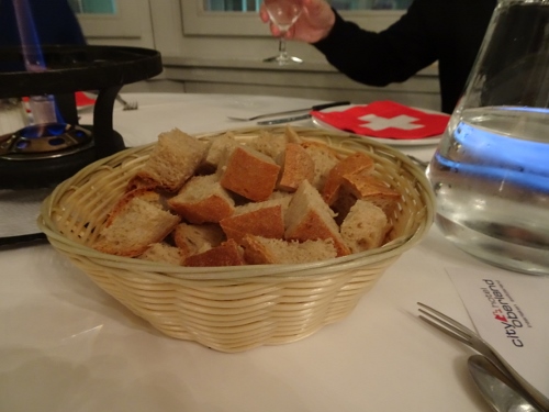 スイスでは、パンだけをチーズフォンデュで食べます。