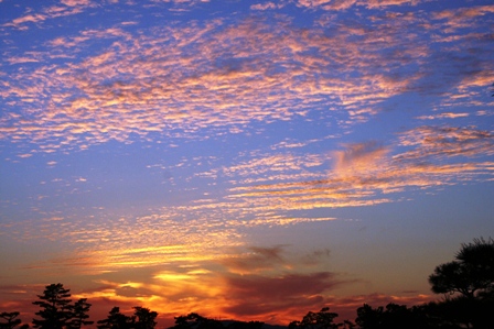 変わった雲が夕焼けを演出しています。