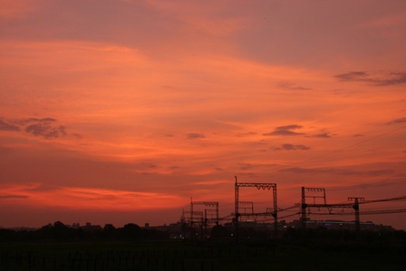 新大宮と西大寺の間の線路沿いです。燃えるような夕焼けに感動しました。