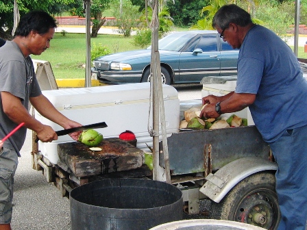 続いては、ヤシの実をおじさんが割って