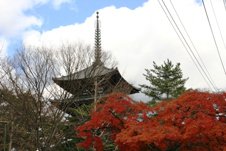 帰り道に通った興福寺の境内に1本だけまだ綺麗な紅葉が