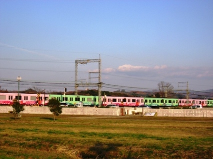 あの車両は大阪行きでも使われているんですね。てっきり京都行きのみと思い込んでいました。最近、大阪へはJRを利用してるもので。主人も毎日近鉄で難波まで通勤してますが、こんな話しませんものね。