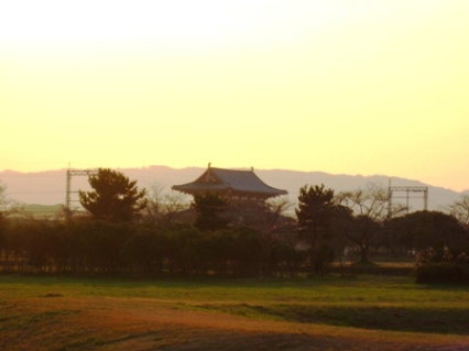 もう日が暮れそうです。朱雀門のシルエットが見えます。