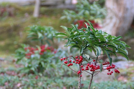 この写真は向こうの万両をぼかして、