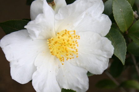 白い山茶花のアップです。