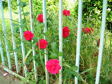 お花を写すつもりが駅前付近にはほとんどありませんでした。近くの雑草が生い茂ってる空き地に何故か真っ赤なバラが咲いていました。