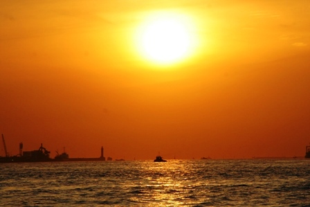感動の水平線の夕日です。