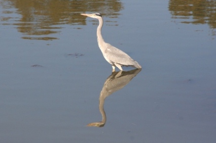 大仏池のアオサギです。水面にもその美しい姿が映っています。