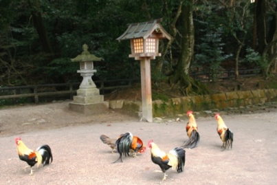 境内に普通にニワトリがいるのを見て、私は奈良公園を思い浮かべました。