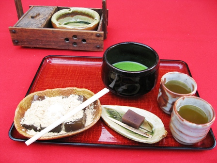 さて、茶店で私はお抹茶セットで、娘はわらび餅を注文しました。