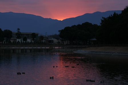 奈良ではアオサギはよく見かけますが、白鳥は無いかも…。