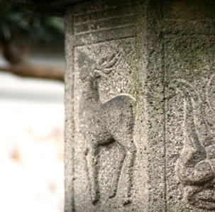鹿の燈籠です。極楽坊にもありました。 元興寺塔跡にて