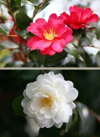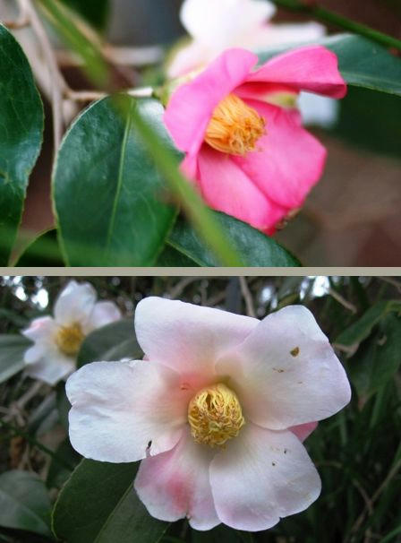 水仙以外にも門前で、ピンクと白の山茶花が満開でした。