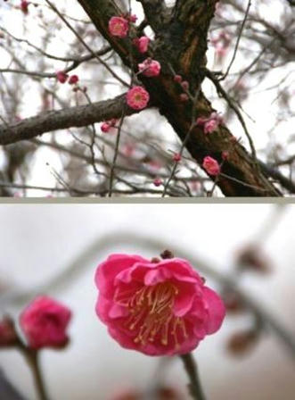 さて、春のゾーンへ行きますと、何と梅が咲いていたのです。