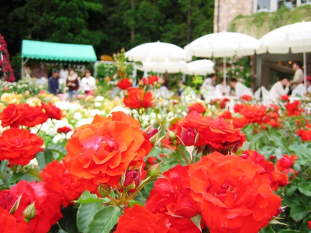 近鉄奈良駅から普通電車で富雄駅下車。そこからはバスがあるのですが、タクシーに乗りました。すっかり遅くなって、着いたのは3時。バラ園だけしか行けませんでした。拝観料は600円でした。着くなりさっそくバラのソフトクリーム(300円)を娘に要求されました。困った女子大生です(^_^;)