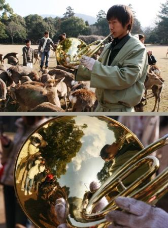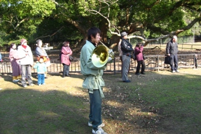 まず、鹿愛護会の方がフレンチホルンを吹きます。
