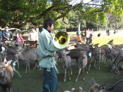 ここでは、奈良の冬の風物詩の一つである「鹿寄せ」が行われます。