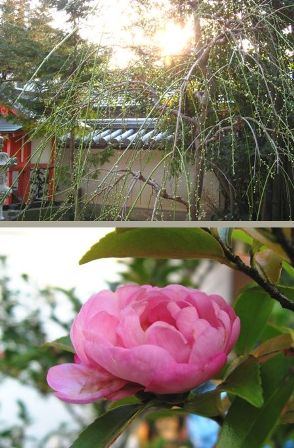 (上)枝垂れ梅 良い雰囲気です。(下)椿の花でしょうか。