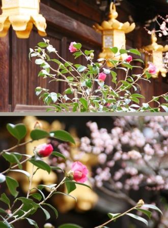 燈籠を借景に椿を撮ってみました。