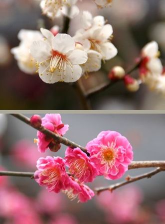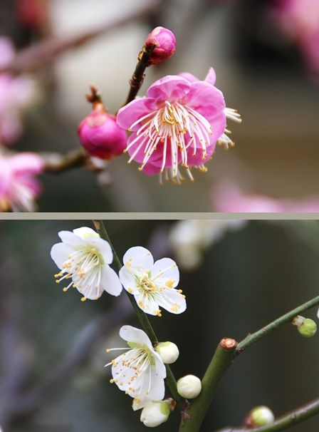 白梅と紅梅のアップです。