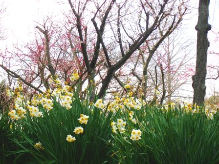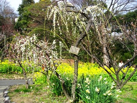 しだれ梅と菜の花と水仙のコラボです。なかなかこういう光景は見れないです。