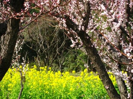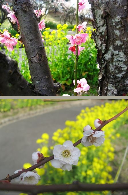 菜の花を借景に紅梅と白梅を撮影しました。