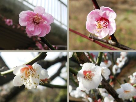 紅梅や白梅と菜の花の黄色って、意外と合うんですね。