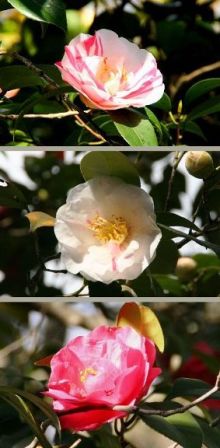 右下の椿は、「だんご三兄弟」ならぬ「椿三姉妹」です。