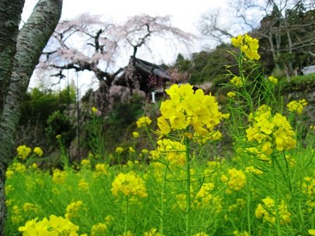 天然記念物のしだれ桜と菜の花です。
