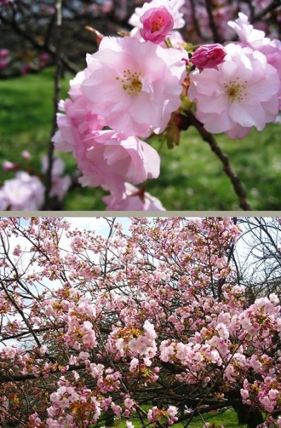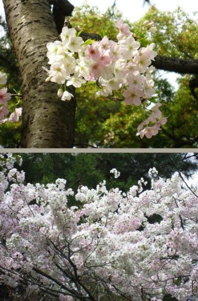 確かに1本の木に一重と八重が咲いてる様には見えますが。