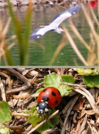 アオサギも飛んでいますし、てんとう虫もいました。