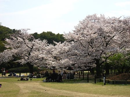 そして、大芝生地に行くと桜が満開で、多勢の方が