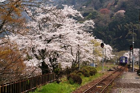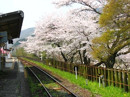 笠置駅はもう桜に囲まれたと言うか、包まれた駅なのです。