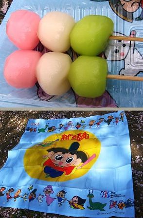 NHKのアニメ「おじゃる丸」のシートと三色団子です。