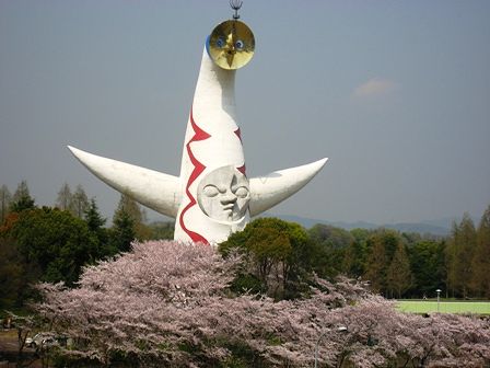 太陽の塔と桜のコラボはここでしか見られない光景ですね。