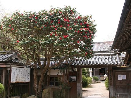 竹林院の門です。立派な椿の木がありました。